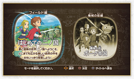 フィールド、バトルなど、最新の「二ノ国」を2つのメニューからお楽しみいただけます!
